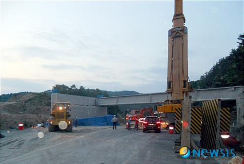 한편 두 동강난 교량 빔은 국내 특허기술을 보유한 Y사가 지난해 11월 제작한 것으로, 철근 등을 이용 거푸집을 만든 후 하루만에 콘크리트를 타설, 조기강도를 내기위해 스팀으로 양생시킨 구조물로 알려졌다.